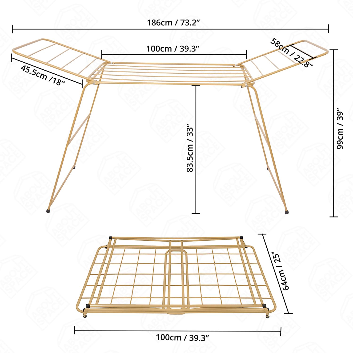 MATERIAL & DIMENSION: The ABOUT SPACE rust-free cloth dryer stand is made of mild steel with powder coating. Measures L 186 x B 64 x H 99 cm