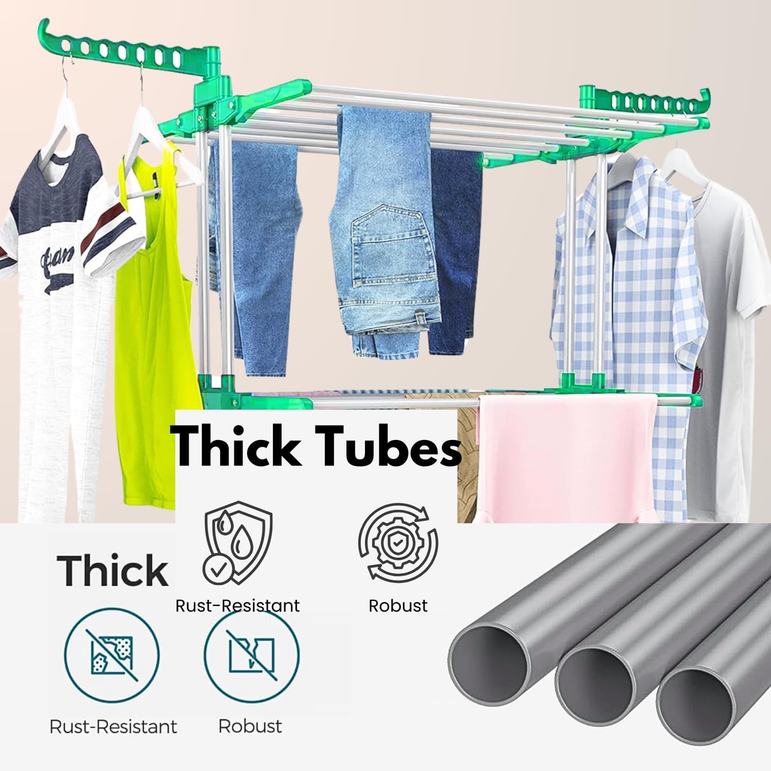Hanging Holes for Extra Hanger Space: Our MegaDry Cloth Drying Stand is equipped with convenient hanging holes, allowing you to expand your drying capacity by adding additional hangers with ease