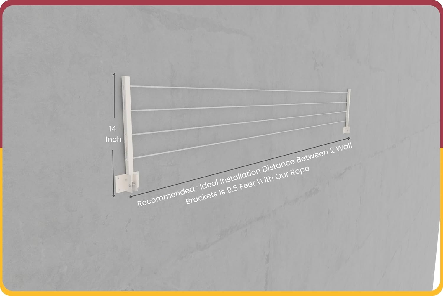 [Note: Ideal Installation Distance Between Two Wall Bracket is 9.5 Ft with our Rope. Please refer to photos uploaded for better understanding.]