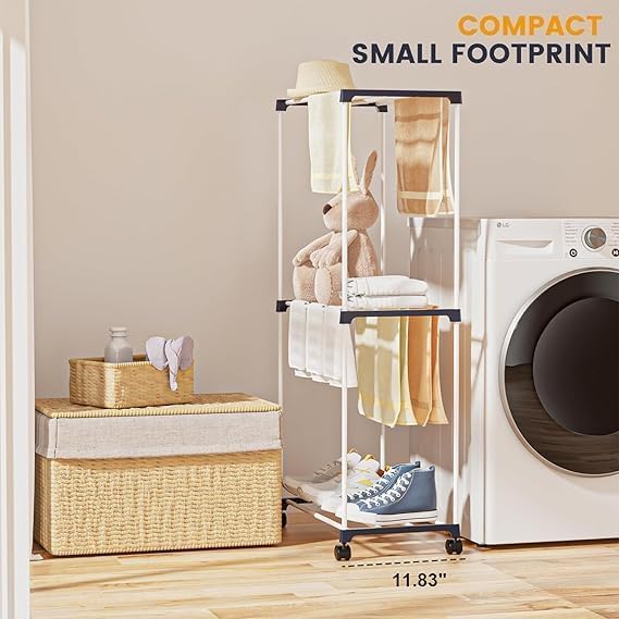 Three-Tier Design: Offers three levels of drying space, maximizing vertical storage for small clothes and items.