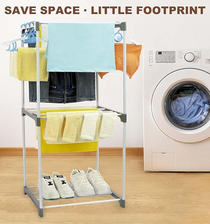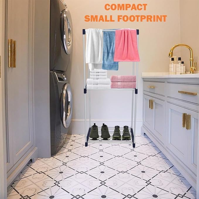 Space-Saving Design: Compact 3-layer drying rack ideal for small spaces, perfect for apartments, balconies, or small laundry rooms.