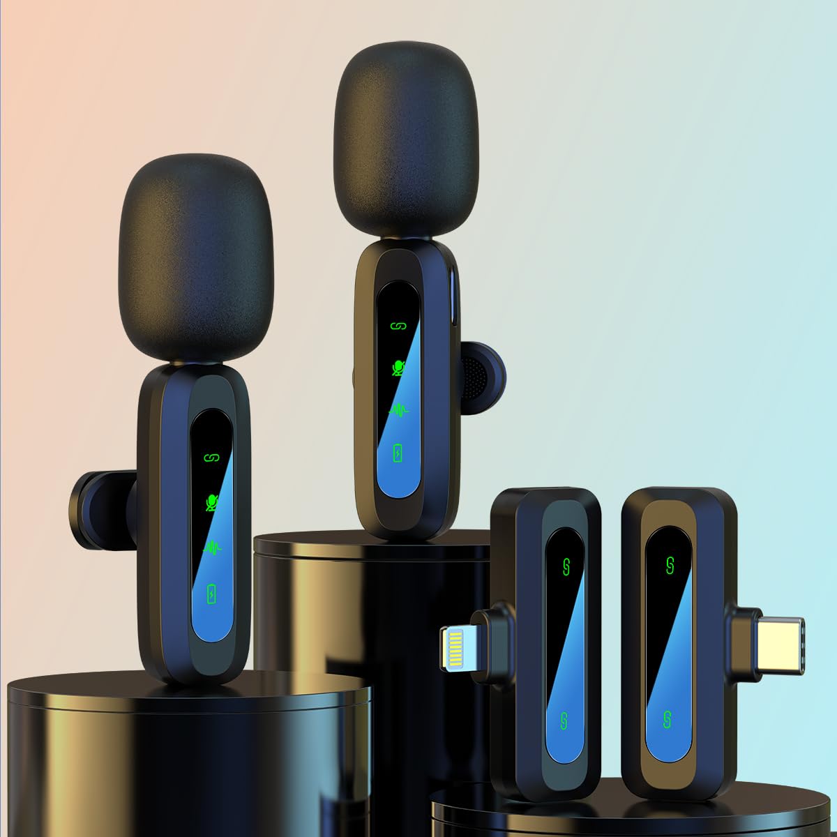 Dual Wireless Lavalier Microphone, Noise Cancelling Clip-On Mic with LED Display, Auto Pairing, 360° HD Sound, Plug & Play for iPhone, iPad, Android – Vlog, YouTube, Podcast, Interview