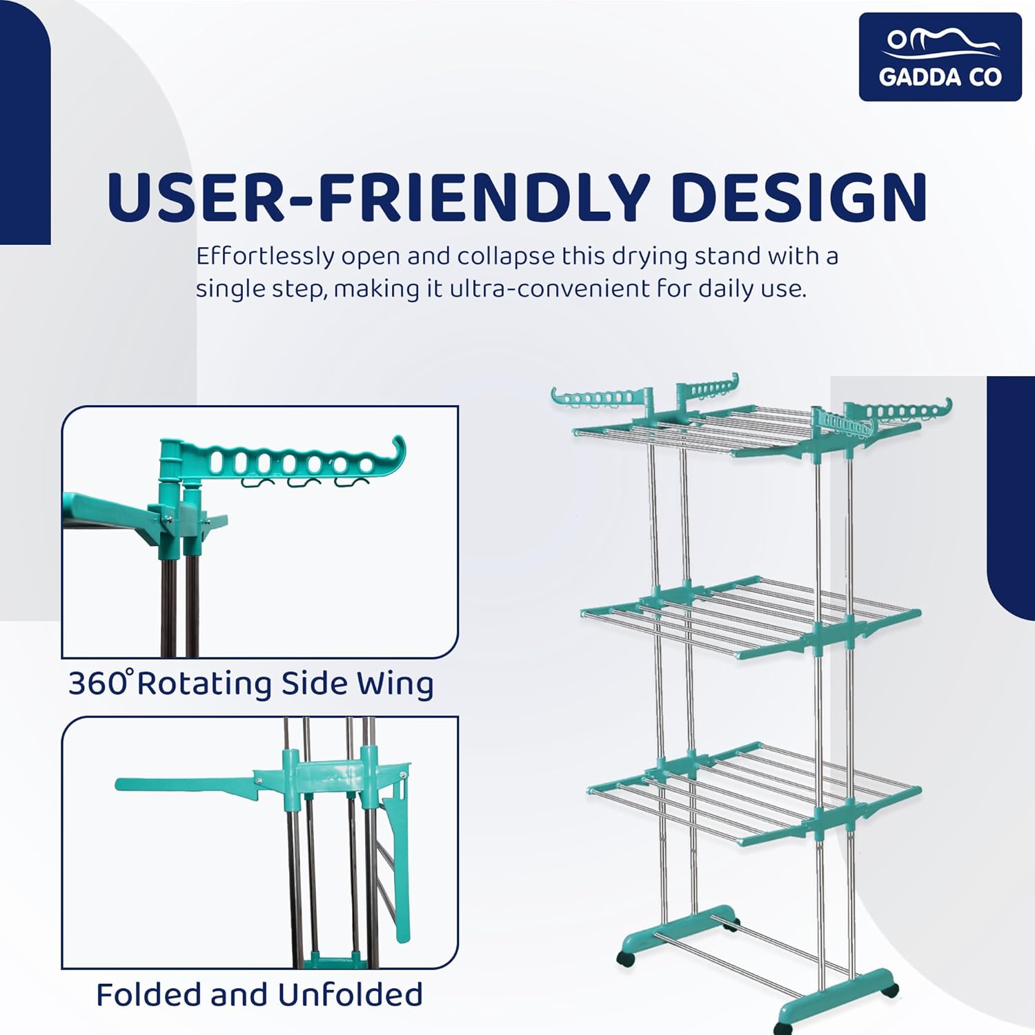 🧳 Foldable & Portable with 4 Caster Wheels – Space-saving foldable design for easy storage and smooth mobility, making it practical for daily use.
