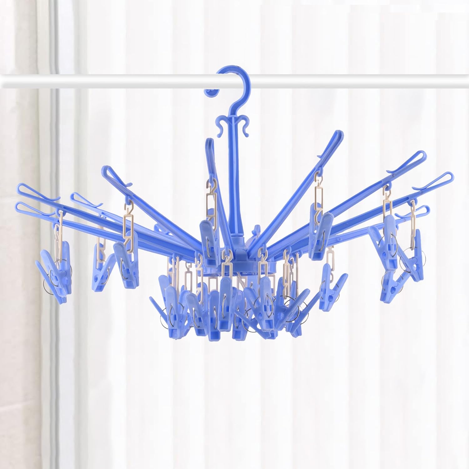 🟨 PACKAGE CONTAINS : 1 Piece Hanger | 24 Clips | 360° Rotation | MATERIAL : Plastic | PRODUCT DIMENSION : 27 cm x 27 cm x 24 cm