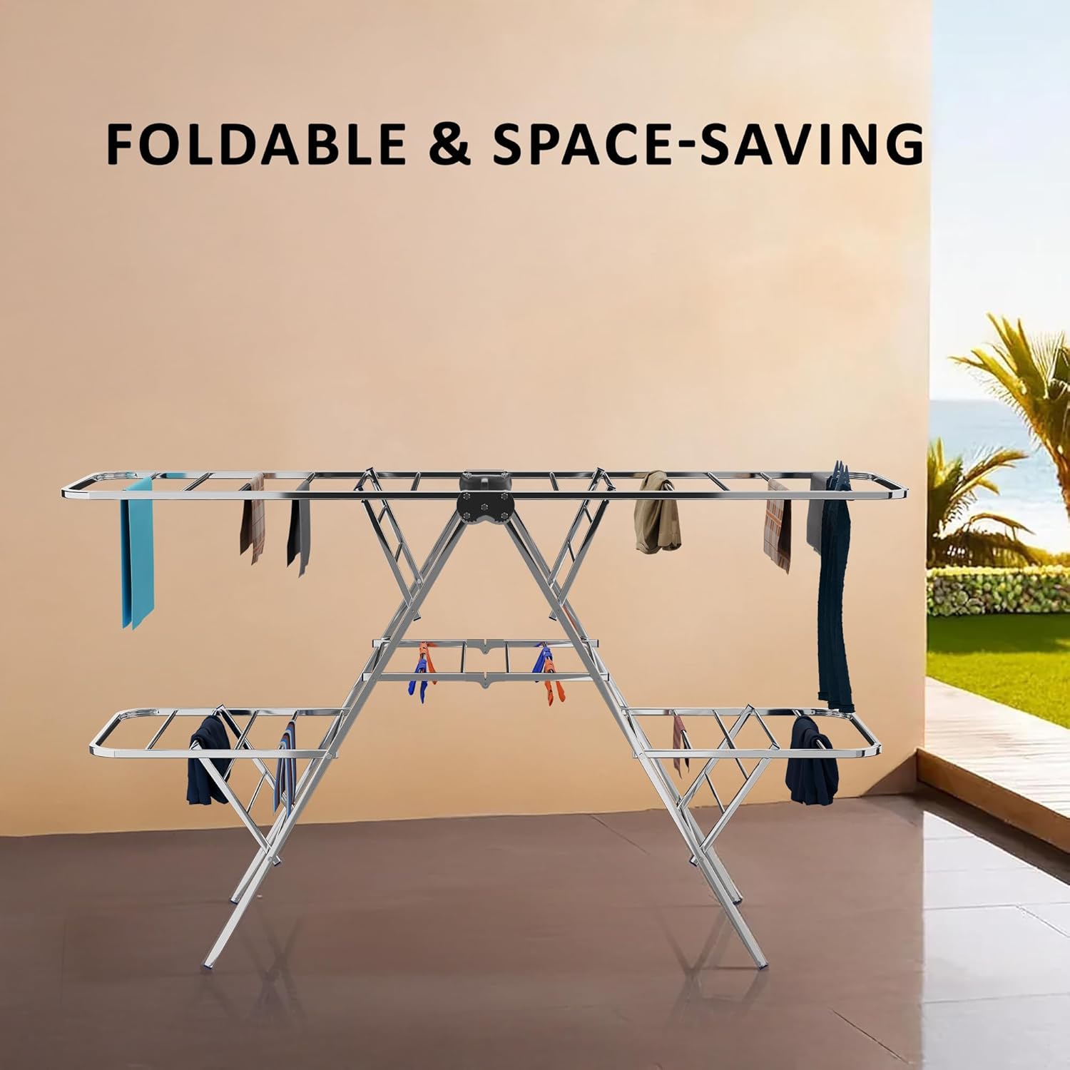 ✅ RUST-FREE STAINLESS STEEL – The Rust-Free Stainless Steel Dress Drying Stand offers durability and long-lasting performance, clothes drying stand steel ensuring your clothes dry safely without rust. Ideal for both indoor and outdoor use, it’s the perfect solution for everyday drying needs.