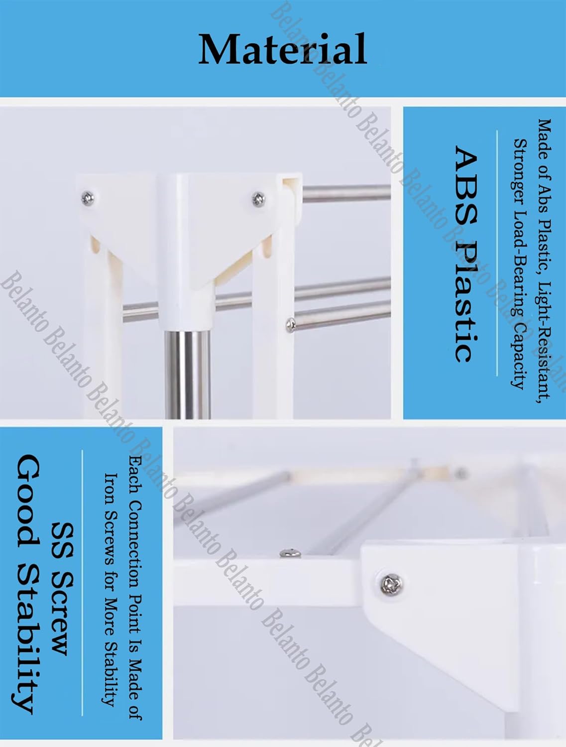 BOX CONTENTS AND DETAILS:The Clothes Drying Rack is made of high-quality ABS and stainless steel, which does not rust, is corrosion resistant and sun resistant. Product category: Floor-standing Clothes Stand Type: 4 Wheels Movable Type, Clothes Drying Rack shape: Single Pole type, Product size after assembly: Approx. 74 x 56 x 87 cm / 29.4 x 22 x 3.4 inches