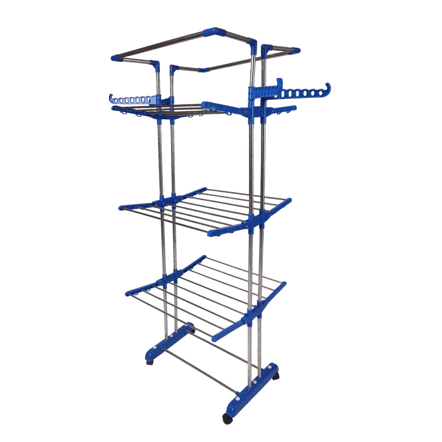 3-Tier Foldable Design: Compact stainless steel cloth drying stand with 3 tiers, perfect for balcony, indoor, or outdoor use.