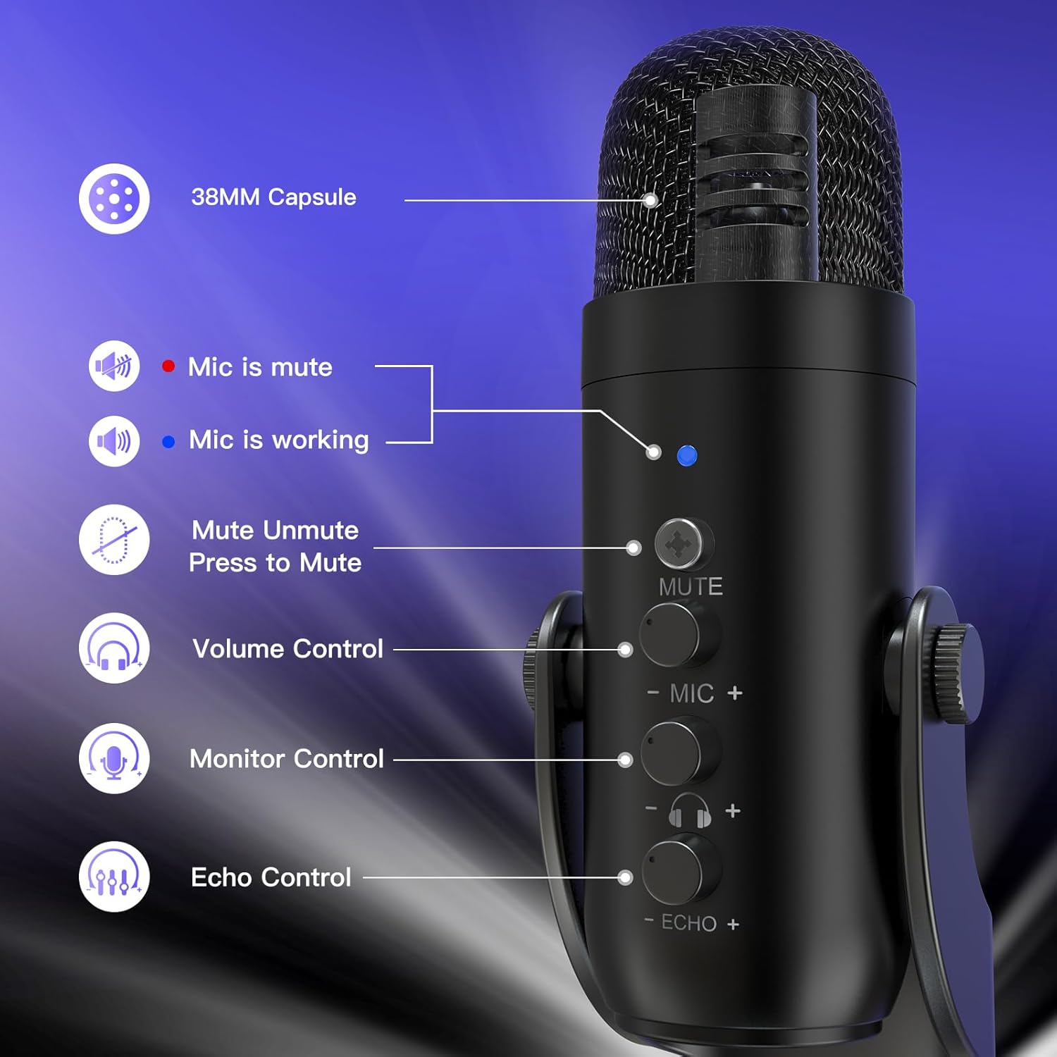 【Precise Mic Gain Control】Enhance your recording experience with the professional gain knob. Easily adjust the microphone for youtube volume and sensitivity to achieve optimal sound quality. Dial the gain down to effectively minimize room noise pickup, and turn it counter-clockwise for increased sensitivity. The Echo function can be adjusted using the dedicated level control and deactivated as desired. The LED mute reminder ensures you never forget to unmute yourself during important moments.